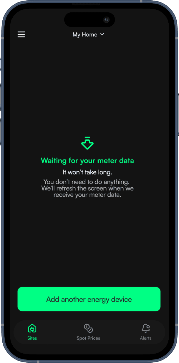 You might need to wait a few minutes before you see any data from your meter. When Zap and your meter is fully connected and working you'll see: