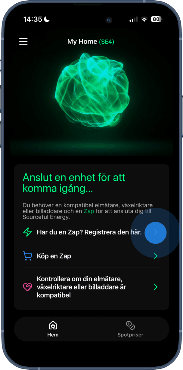 Den gröna indikatorn blinkar när Zap tar emot data från din mätare. Detta steg kan ta några minuter.